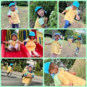 くま組🐻:園外遊び✨ 2025年10月10日 暑さが少し和らぎ、お外で遊ぶことが増えてきました! かくれんぼや追いかけっこ、しっぽ取りなど、ルールのある遊びも少しずつ増えてきました✨ 公園に着くと「かくれんぼしよ!」とお友だちを誘ってルールを覚えながら楽しんでいます😊 これからもたくさんお外で身体を動かして楽しんでいきます!