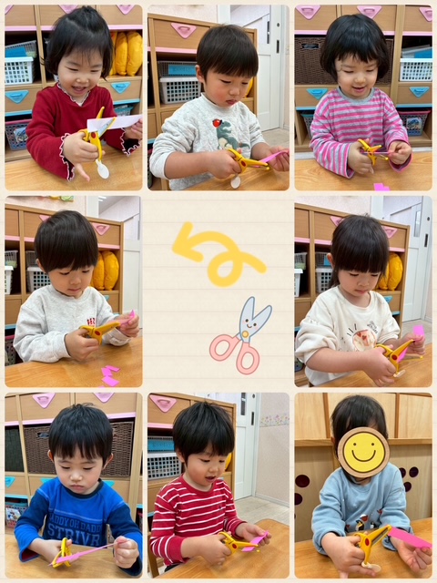 そして今回、初めて保育園でハサミを使いました✂️✨ 初めての子は少し緊張した様子でしたが、上手く切ることが出来るととても喜んでいました。
