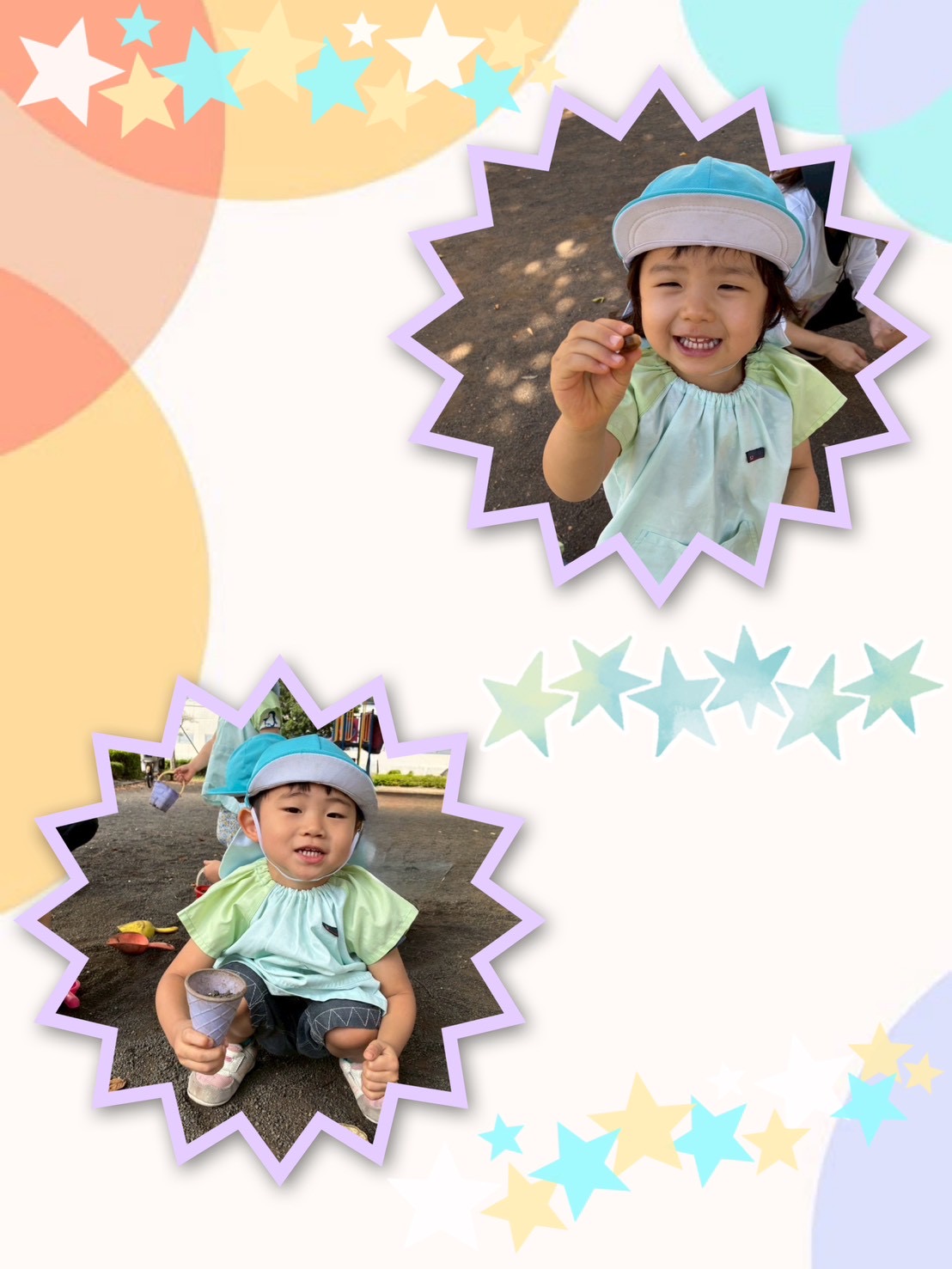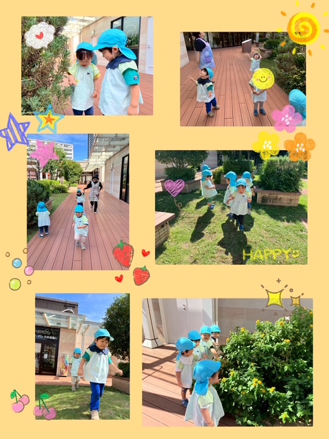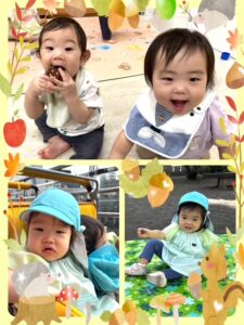 秋晴れの日、ボーノ屋上の広場で遊びました☀️ 「たんけん!たんけん!」と言いながら、お花を探したり、落ち葉を見つけたり、お山に登ったりと広場を探検してる姿が微笑ましかったですよ🌸☺️