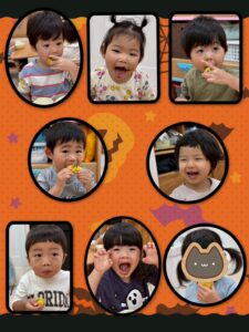 ハロウィン仕様の午後おやつも嬉しそうにしながら、皆でお話をしたり口元にチョコをつけながら美味しそうに食べて、ハロウィンを満喫したつき組さんでした👻