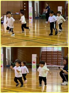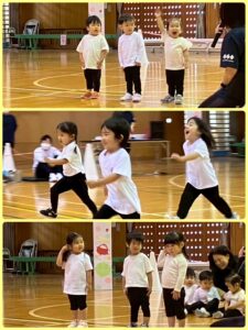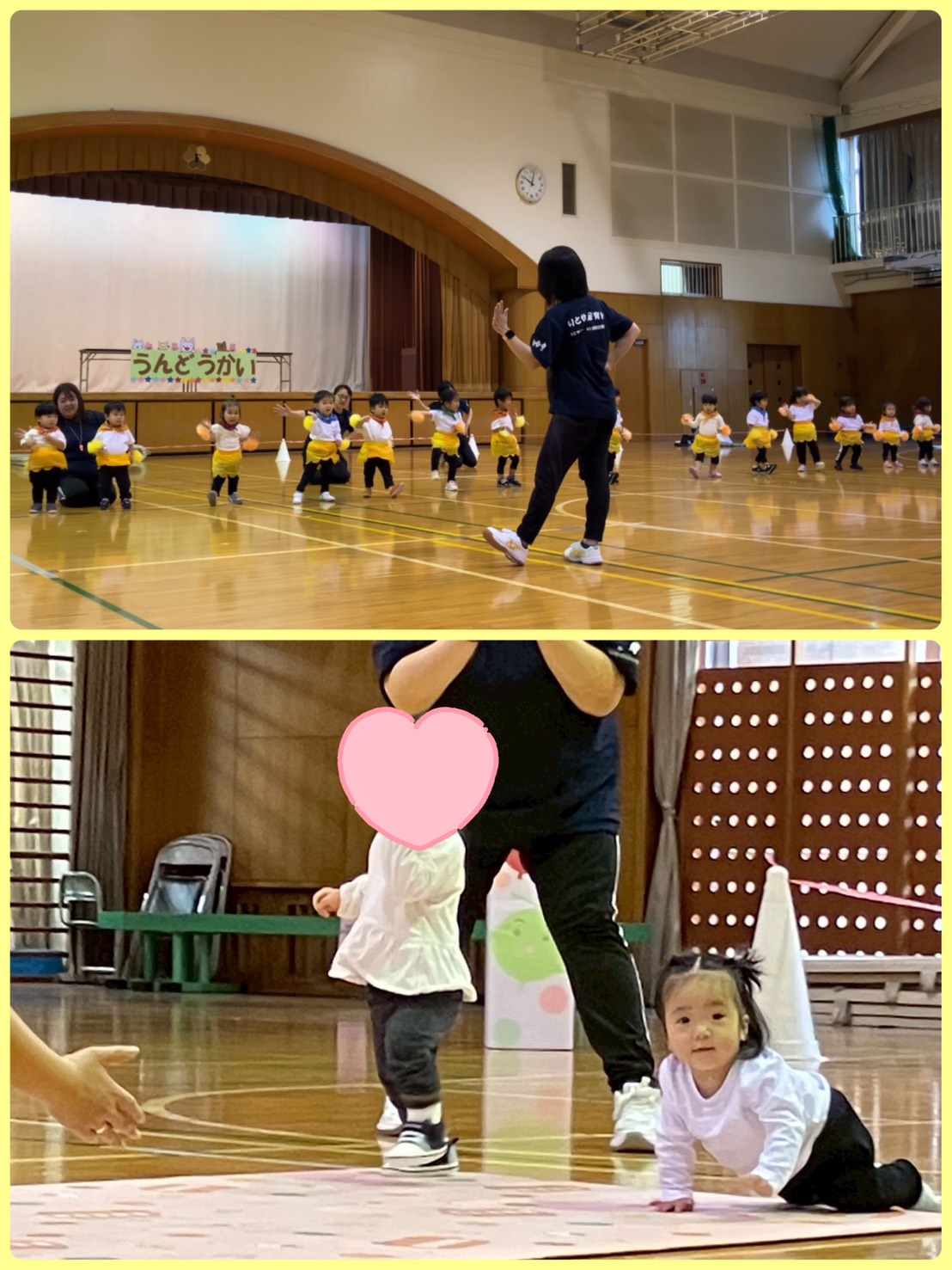 運動会✨① 2025年11月08日 運動会がありました✨ お家の人がたくさん見に来てくれた中、ドキドキ💓していたお友だちですが、元気に楽しそうに参加していました🎶 頑張った後は、メダルのプレゼント🎁とお土産をもらい、嬉しそうにしていました✨