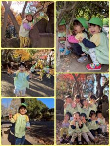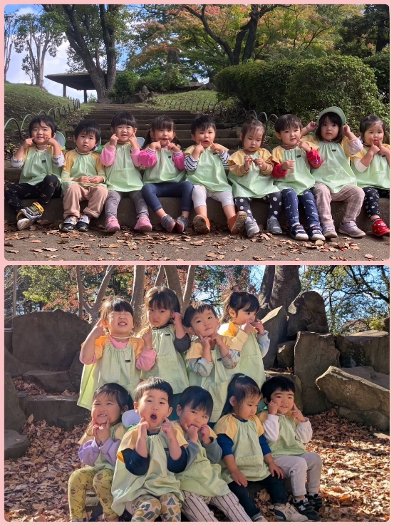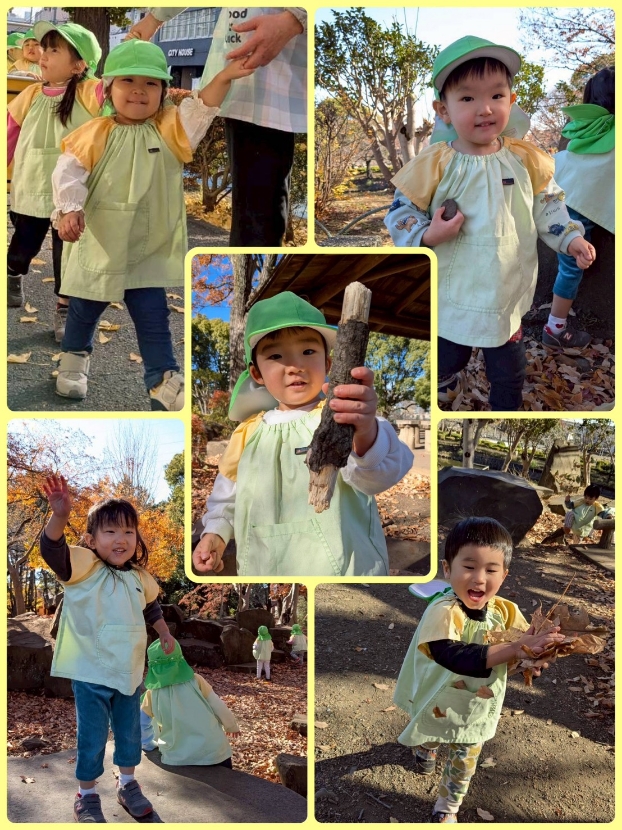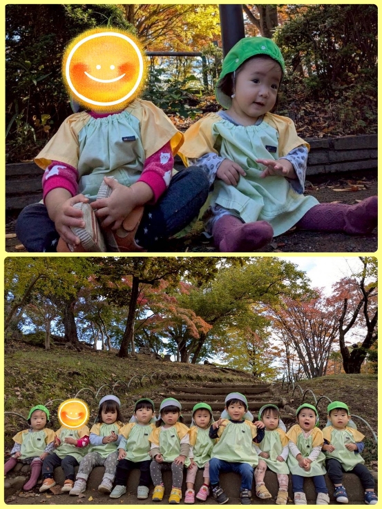 秋を楽しむ🍂🥰 うさぎぐみ 2025年12月20日 公園に行って元気いっぱい遊んで来ました。 トンネルの中に隠れて「ま〜だだよ!🎶😁」と隠れん坊をしてみたり、落ち葉や枝を見つけ 「こんなのあったよ〜✨😄」と発見を教えてくれたり、日だまりの中楽しんでいます。