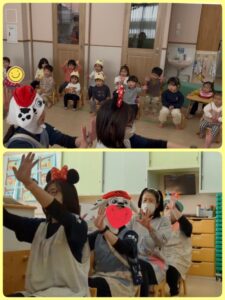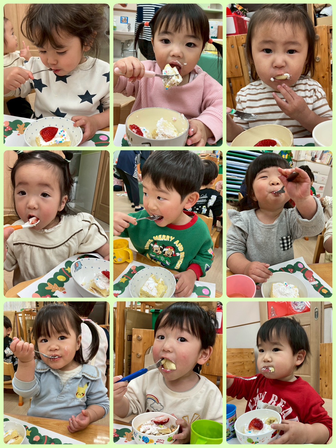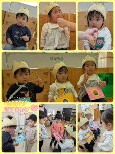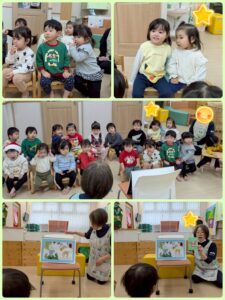 12月誕生日会🎂 2025年12月20日 12月生まれのお友だちの誕生日会がありました✨ 「何歳ですか?」「好きな食べ物は?」などの 質問に恥ずかしがりながらも上手に答えることができていたお友だち😁🎶 先生たちからの出し物は “もりのお風呂”の劇でした👏 次から次に絵本にはないキャラクターが 登場し大盛り上がり✨ みんなで「ごしごし しゅっしゅ」と 楽しみました🥰 お誕生日おめでとう🎉 素敵な一年を過ごしてね😊