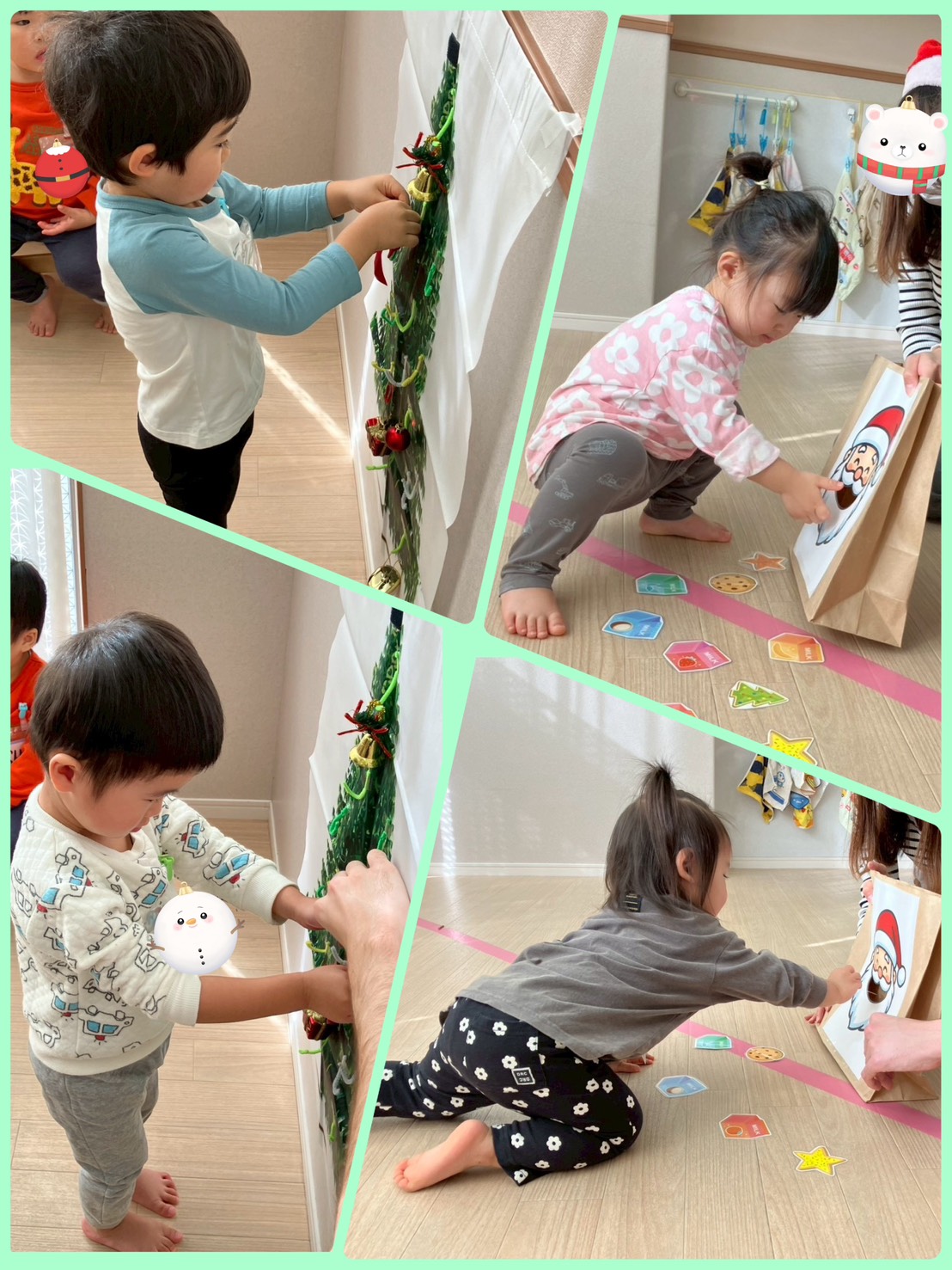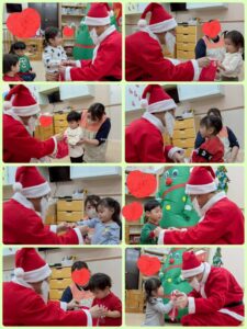 英語教室✨ 2025年12月23日 先日の英語教室は クリスマス🎄バージョンでした✨ サンタさん🧑🎄にお菓子をあげたり、クリスマスツリー🎄に飾り付けをしたりと、とても楽しそうなお友だち😊 最後はクリスマスソングを歌い、一足早くクリスマスの雰囲気を満喫したうさぎ組🐰さんでした✨✨