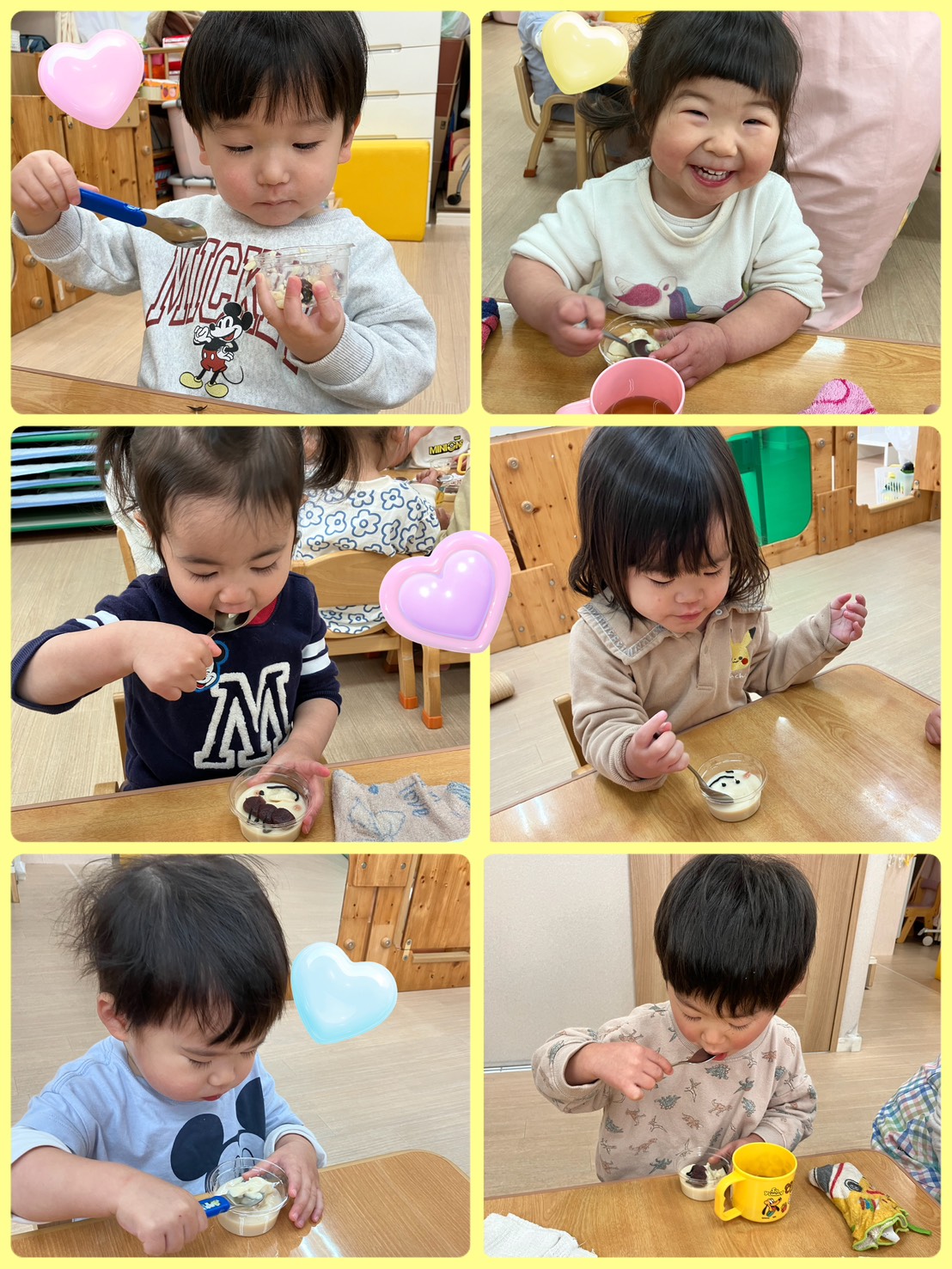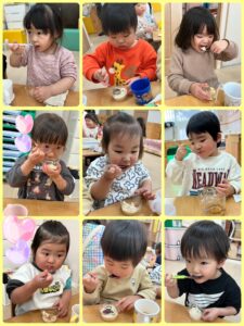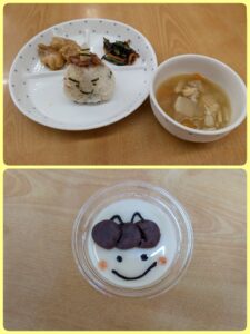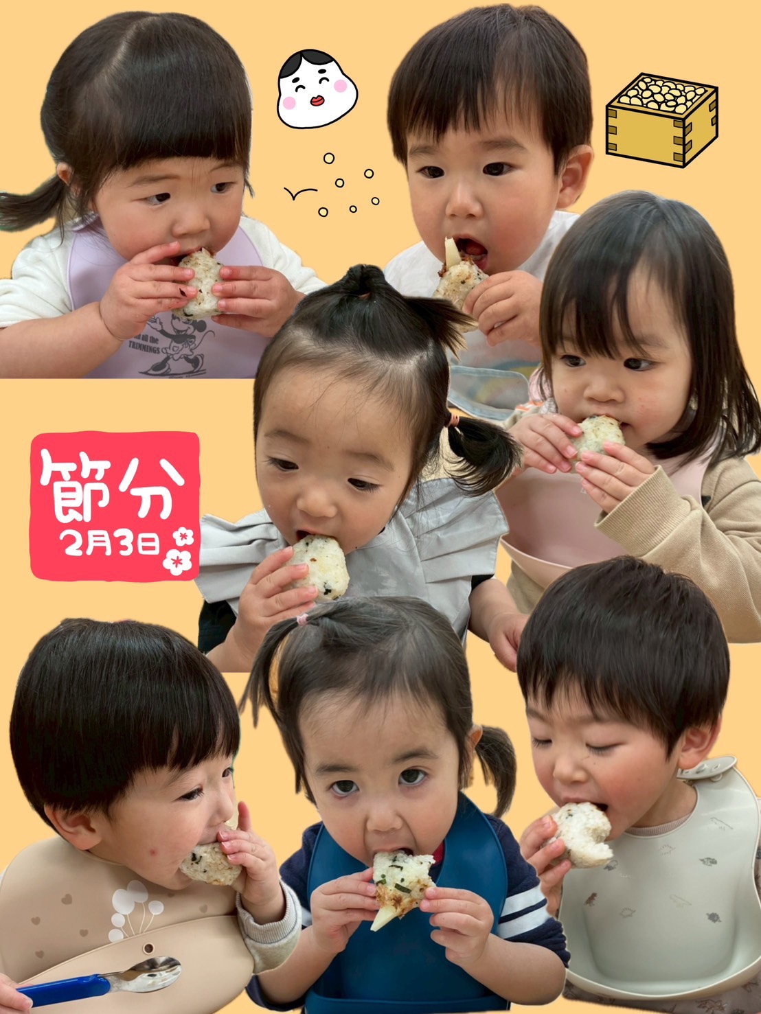 給食は鬼おにぎり🍙 おやつは鬼豆乳プリン🍮 「おいしそ〜う😋」と大喜びで 食べていました❣️
