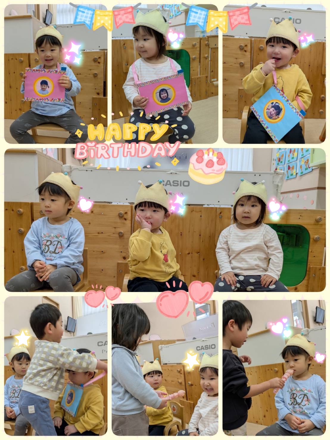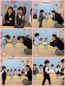 3月誕生日会🎂 2026年03月25日 3月生まれのお友だちの誕生日会がありました❣️ 先生からの出し物、 「足跡だーれだ!」のクイズでは「ねこさんだ!いぬだよ!」などと大盛り上がりで答えていました😻 先生やお友だちからお歌やカードのプレゼントをもらい、 ちょっぴり照れながらも嬉しそうなお友だち🥰 お誕生日おめでとう🎉 素敵な1年を過ごせますように🫶
