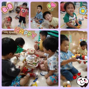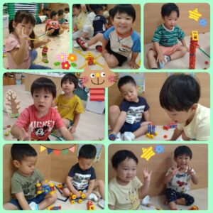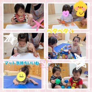 少しずつお友達と顔を見合わせて笑ったり、一緒のおもちゃで遊ぶことが増えてきました! 泣いているお友達がいると、頭をよしよしする姿も見られます😁✨️