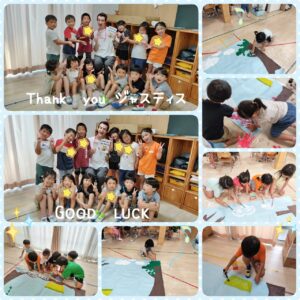英語教室ではお世話になったジャスティス先生のお別れ会!最後はみんなで「GOOD LUCK!」のご挨拶👍