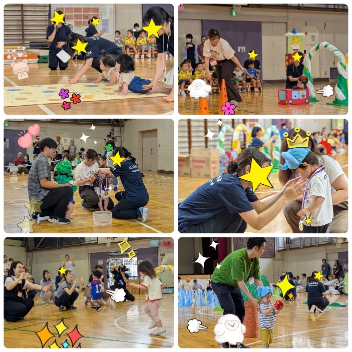 午前に行われた乳児の部では、いつもと違う雰囲気に、戸惑ってしまう姿も見られましたが、競技の時にはみんな笑顔で頑張ることができました!☺️ 親子競技では、各クラスの可愛らしい衣装の子ども達に会場全体が癒されましたね🥰🩷