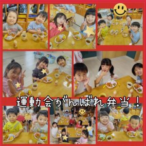 運動会の前日には、運動会頑張れ!弁当を食べ、気合が入っていた子ども達!本番はたくさんの応援のなか、どの競技も全力で頑張る姿が見られ、大きな成長を感じました😊運動会を通じて、友達と一緒にやればできる!助け合おうといった気持ち芽生え、ぐんぐん育っているように感じます☺️