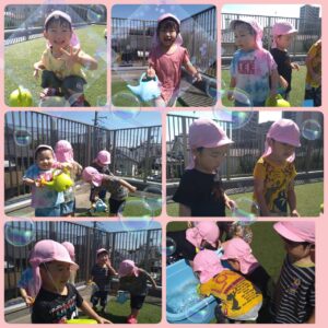 園庭遊びでは、鬼ごっこを楽しんだり、遊具を楽しんだりと元気いっぱいのぱんだ組です🤩