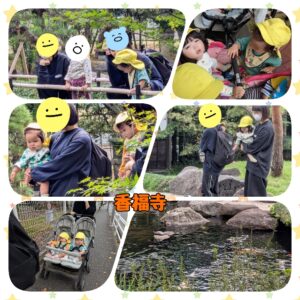 暑さも落ち着き、少しずつ秋の気候を感じる気候になってきましたね🤗 水遊びが終わり、戸外で過ごすことも増えてきました🎶ひよこ組さんは晴れた日には線路沿いやお寺をお散歩したり、神社で自然を感じながら遊んだりして楽しんでいます☺️