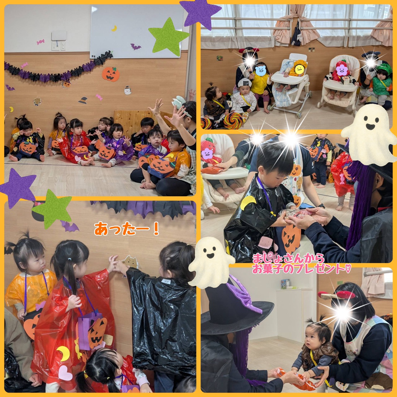 こども園では10月31日にハロウィン会を行いました🎃✨️当日は朝からドキドキ・ワクワクしているお友達💓各クラスそれぞれかわいい仮装を来て大変身!!