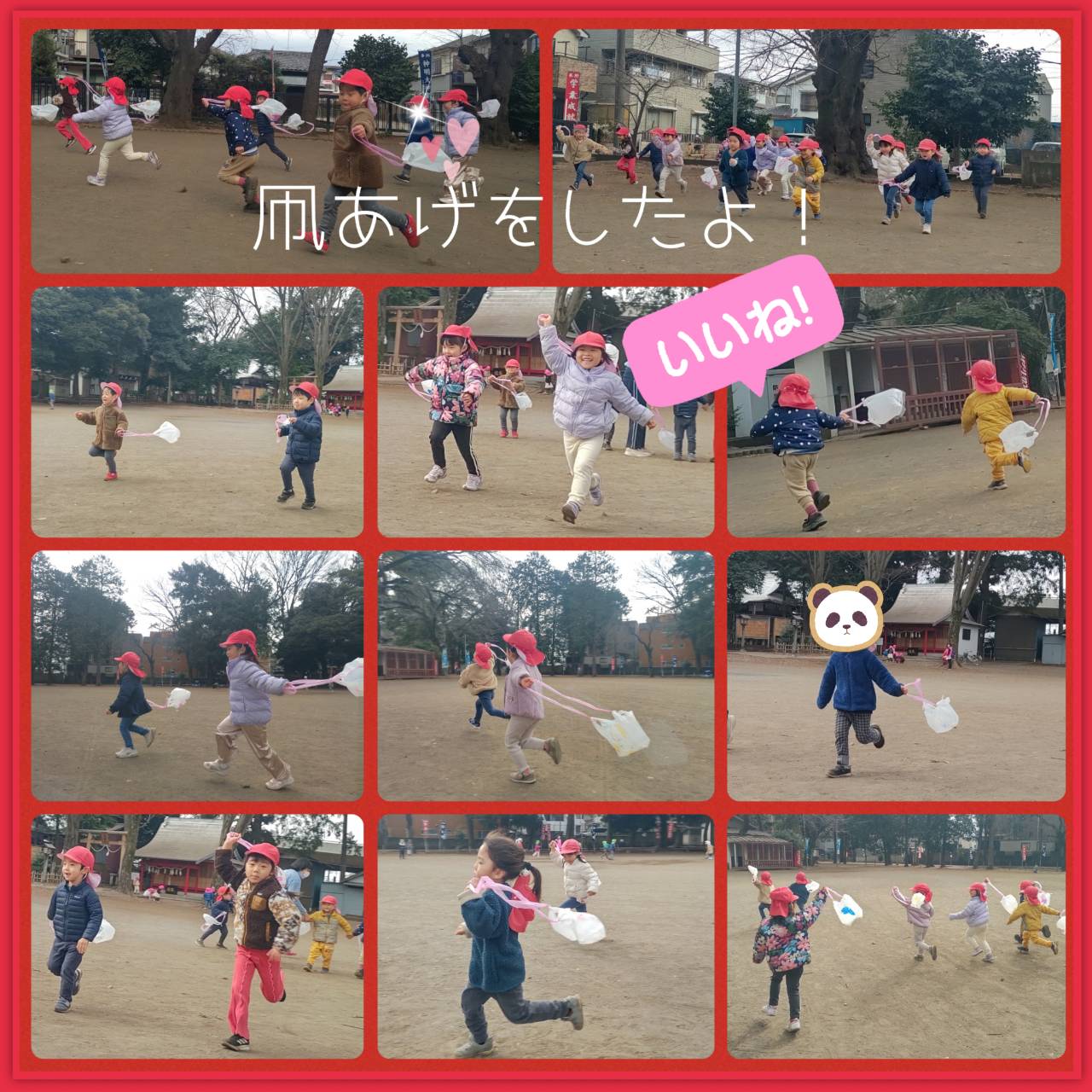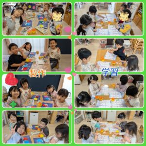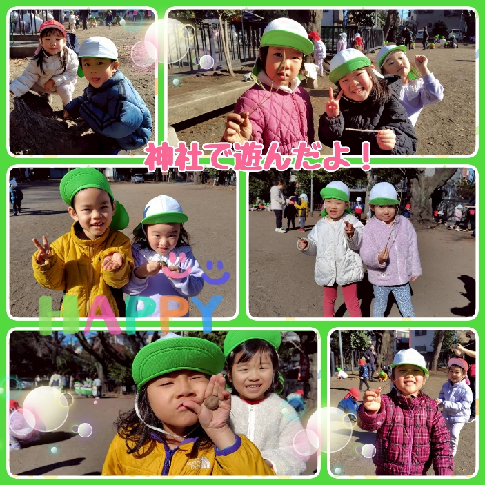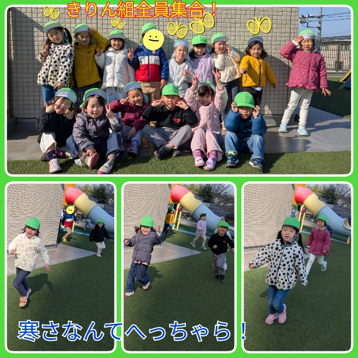 年が明け、久しぶりのこども園でしたが、みんな元気いっぱいな姿で登園してきてくれて嬉しく思いました! 寒さが増していますが、日差しが暖かく気持ちがよい日も多く、園庭や神社への散歩でたくさん体を動かしています😊 神社では、ダンゴ虫を探したり、木の枝で絵を描いたり、細長い葉っぱを友達と引っ張りどちらが長く残せるかを競って遊んだりと、自然の中から遊びを見付けて楽しんでいます!園庭では氷鬼やだるまさんが転んだ、花いちもんめなどをして盛り上がっていますよ😄 線や数の学習も頑張っています!椅子に座って鉛筆を持つ姿勢や、学習を静かに丁寧に行うことなど、いろいろなことに気を付けながら取り組んでいます。ひらがなや数字は、みんなどんどん分かるようになってきていて、楽しい!もっとやりたい!と意欲的な姿が多く見られています☺️ これからも、きりん組での生活や活動の中で、子ども達のやりたい!を大切にしながら、たくさんのことに挑戦し、進級に向け自信を付けていけるように見守っていきたいと思います。