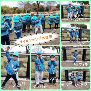 もうすぐ卒園のぞう組さんがお別れ遠足に出かけました!行き先は『よこはま動物園ズーラシア』行きのバスからウキウキが止まりません😁🎶入り口で記念写真を撮ったら、いざ園内へ!! 『全種類コンプリート』を目標にたくさん歩きたくさんの動物たちに出会いました。でも、やっぱり気になるのは⋯⋯お弁当😁🍱 ちょっとだけ予定を早めてお弁当タイム🎶 愛情いっぱいのお弁当とおまけのおせんべいを食べた後は⋯元気に鬼ごっこ!後半戦に備えます😊✨️✨️ 後半戦はライオンキングの世界へ🦁 ちょっぴり疲れが出ていた子ども達も大喜び✨️✨️✨️役になりきり写真撮影をしてきましたよ💕(恥ずかしくてできなかったお友達は違う写真で😊) 最後はみんなでご褒美アイス🍦🍨大満足な遠足になりました✨✨ もちろん帰りは夢の中😴💤