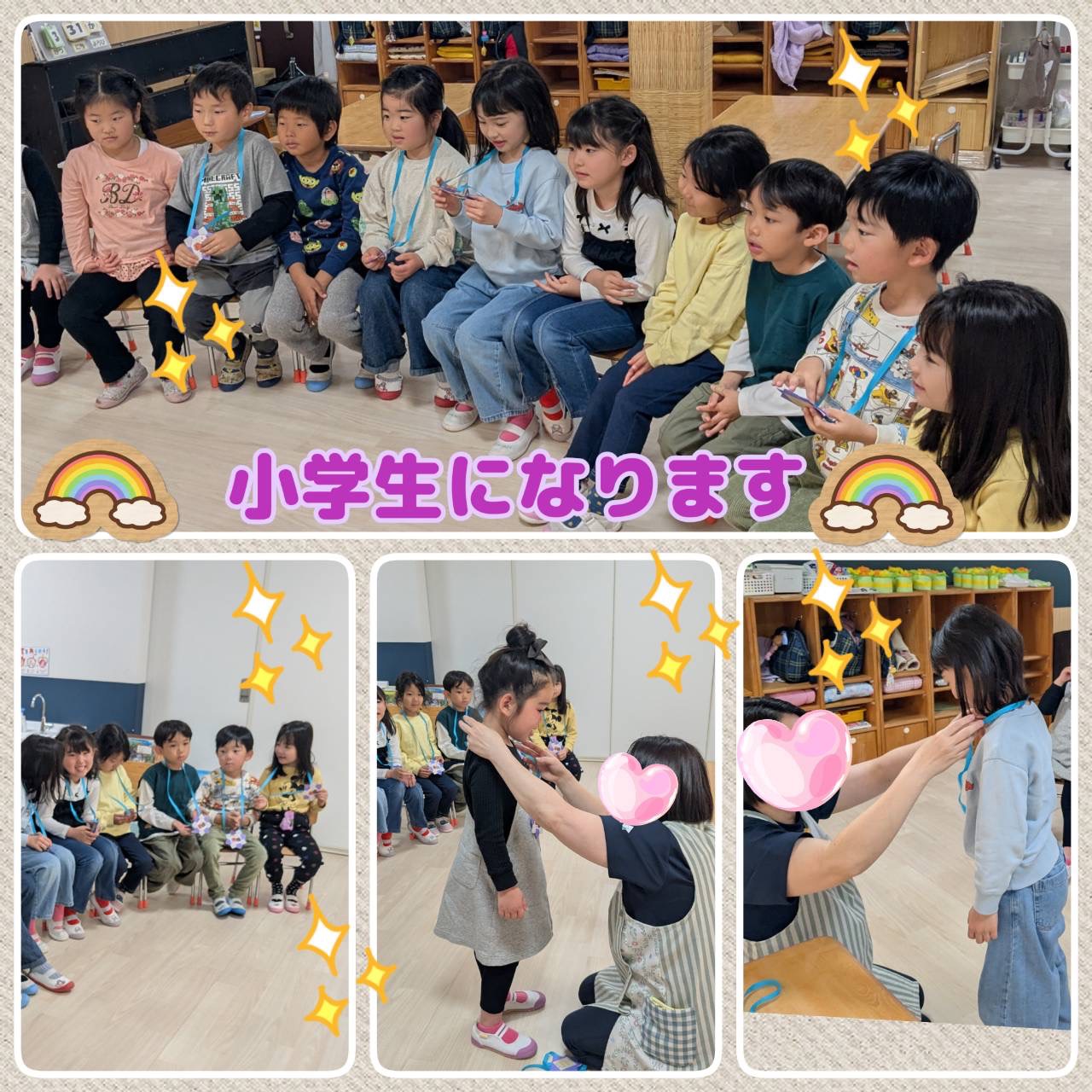 本日、進級式を行いました🌸 担任やお友達とこの1年を振り返り、楽しかったことやできるようになったことを確認しました🥰 1年間の成長✨を感じることができて自信に満ちた子ども達の笑顔はキラキラ輝いていましたよ🤩 その後は、新しいクラスや担任の先生との交流会もしました❣️