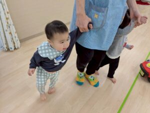 また、みんなだいすきな「ピヨピヨ行進曲」を流すと、保育者やお友だちと手を繋いで一緒に歩く可愛い姿がありました🥰🤝♫