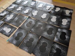 黒い画用紙にスプレーに入った白い絵の具を吹きかけました!普段あまりしないことなので、子どもたちも興味深く取り組んでいました👍🏻雪をイメージして吹きかけてみました☃️