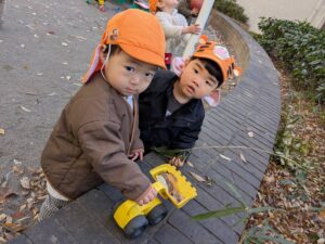 朝と昼の寒暖差が激しくなり、お散歩の時に、風が吹くたびに「さむい」と言いながらも、寒さを楽しむそら組さんです😊