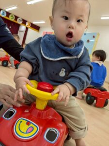 コンビカーに乗ってクラクションをブーブーと鳴らしたり、ボールを投げて笑顔を見せてくれました✨🥰