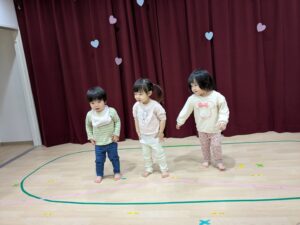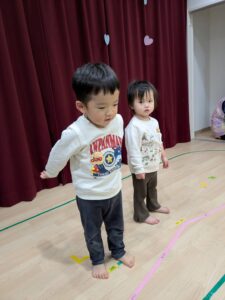 また、みんなだいすきな「ピヨピヨ行進曲」を流すと、保育者やお友だちと手を繋いで一緒に歩く可愛い姿がありました🥰🤝♫
