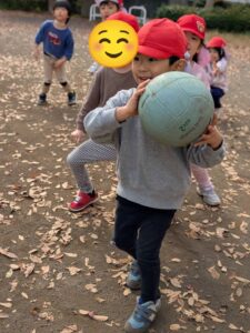 外に遊びに行く前は「寒い〜」と言っているにじ組の子どもたちですが、元気いっぱい動くとすぐに「暑い〜🔥」と汗ばんでいます😆