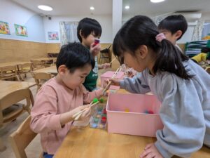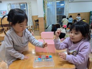 箸が上手に使えるようになりたいという思いがつよい子どもたちは、結構夢中で楽しく取り組んでいます💪🏻