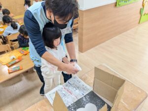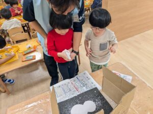 子どもたちは、出来上がった作品をみて喜んでいました😄