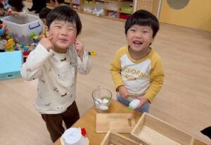 保育室に慣れるまで少し時間が必要だった子どもたちも、今では安心した表情で過ごし、笑顔いっぱいの毎日になりました😊