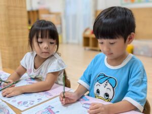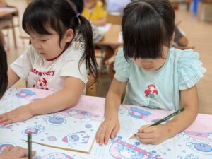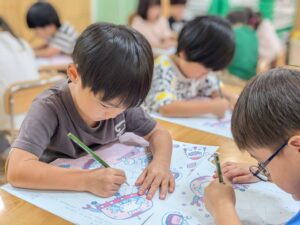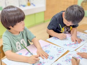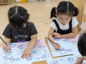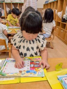 9月に入り、平仮名のワークを始めました📝✨️鉛筆の持ち方からどのぐらいの強さで持つのか、片付けの仕方などを学んだあとに早速挑戦‼️まだ最初の方なので平仮名は出ていないですが鉛筆を持てることが嬉しくてとても集中して頑張る姿が✨️