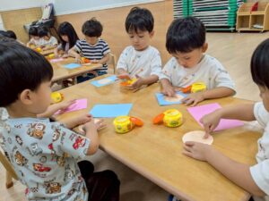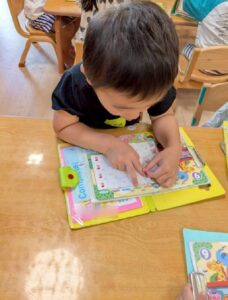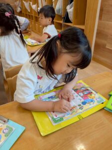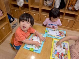 シール貼りもとっても上手になり、自分たちで「今日はここ〜!」と言いながらシールを貼る姿があります!