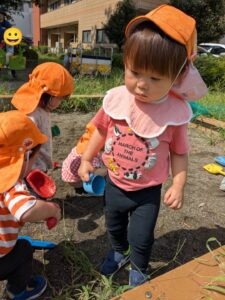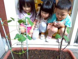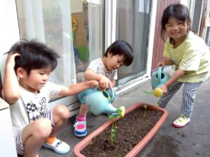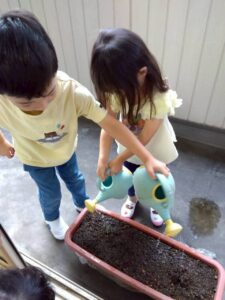 「また大きくなってるよ!」と毎日観察して、お当番さんがお水をあげるのを嬉しそうに眺めています。