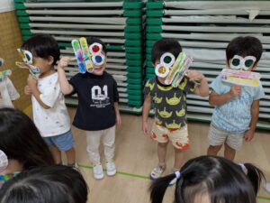 最後は、メガネに好きな色のセロハンを2種類選んで貼りました😎🥸🧐
