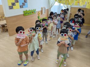 自分の名前を言ったり楽しかったことを話すなど、まだ恥ずかしい子もいますが、ゆっくりと見守っていきたいです☺️