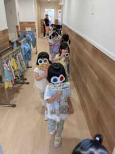 一階の乳児クラスや4歳児のにじ組、事務室にお邪魔して、歌をうたったり褒めてもらったりして大満足な子どもたちでした🙆