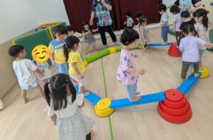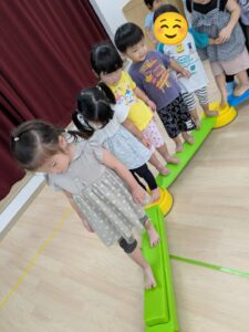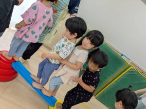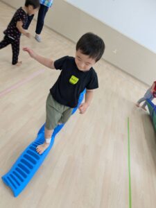 「入れて〜」「どうぞ!」とやりとりをしながら平均台に挑戦する姿にほっこりしました😊💕