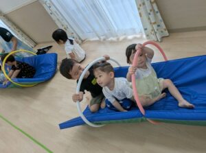 平均台、フラフープトンネルなどを使いたくさん身体を動かました!