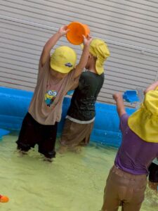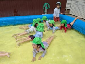 ワニ🐊さん歩きをしたり、水をかけ合ったりして元気に楽しみました💦