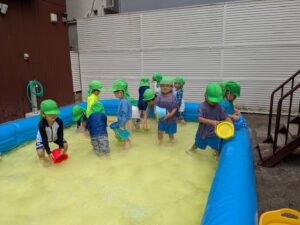 先日今年度最後の水遊びを行いました!とても久しぶりの水遊びにつきぐみのお友だちは大興奮✨