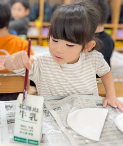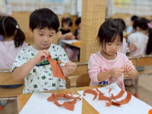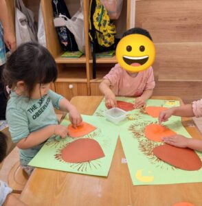 出来上がるとお友だち同士で見せ合ったり、褒めたりする姿も見られました‼️