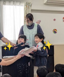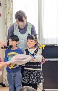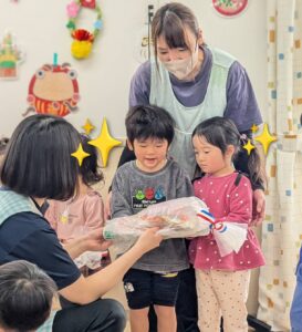 園長先生がお手玉を披露すると、「すごーい!」「わー!!」と歓声があがりました📣