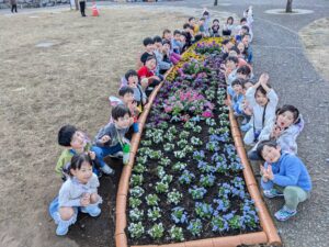 そして、中央公園の花壇に花を植えに行き、そこで全員集合の写真をパチリ!