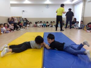 体操スクールでは、マットでやきいも🍠ゴロゴロをしました。