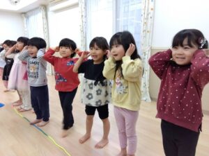 歌もセリフも全部覚えている子どもたち。ゲームをしたり毎日楽しく過ごしています☺️