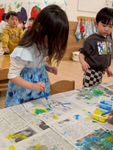 色が混ざり新しい色が完成した時に「すごーい!」と感心していたお友だちです!
