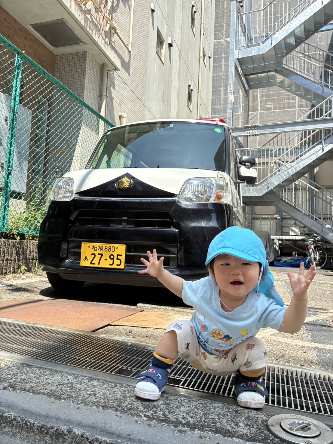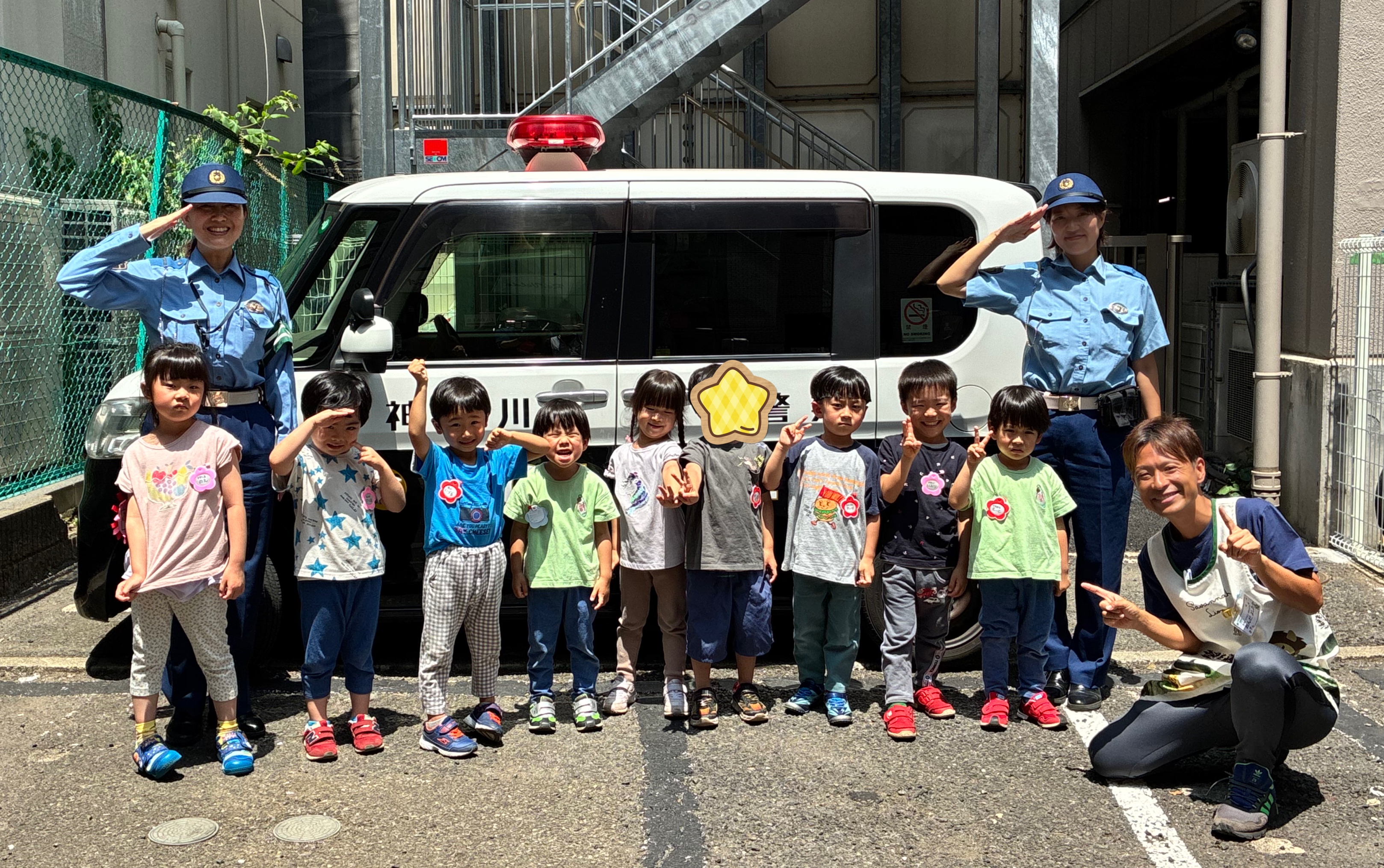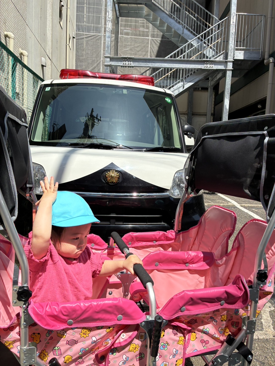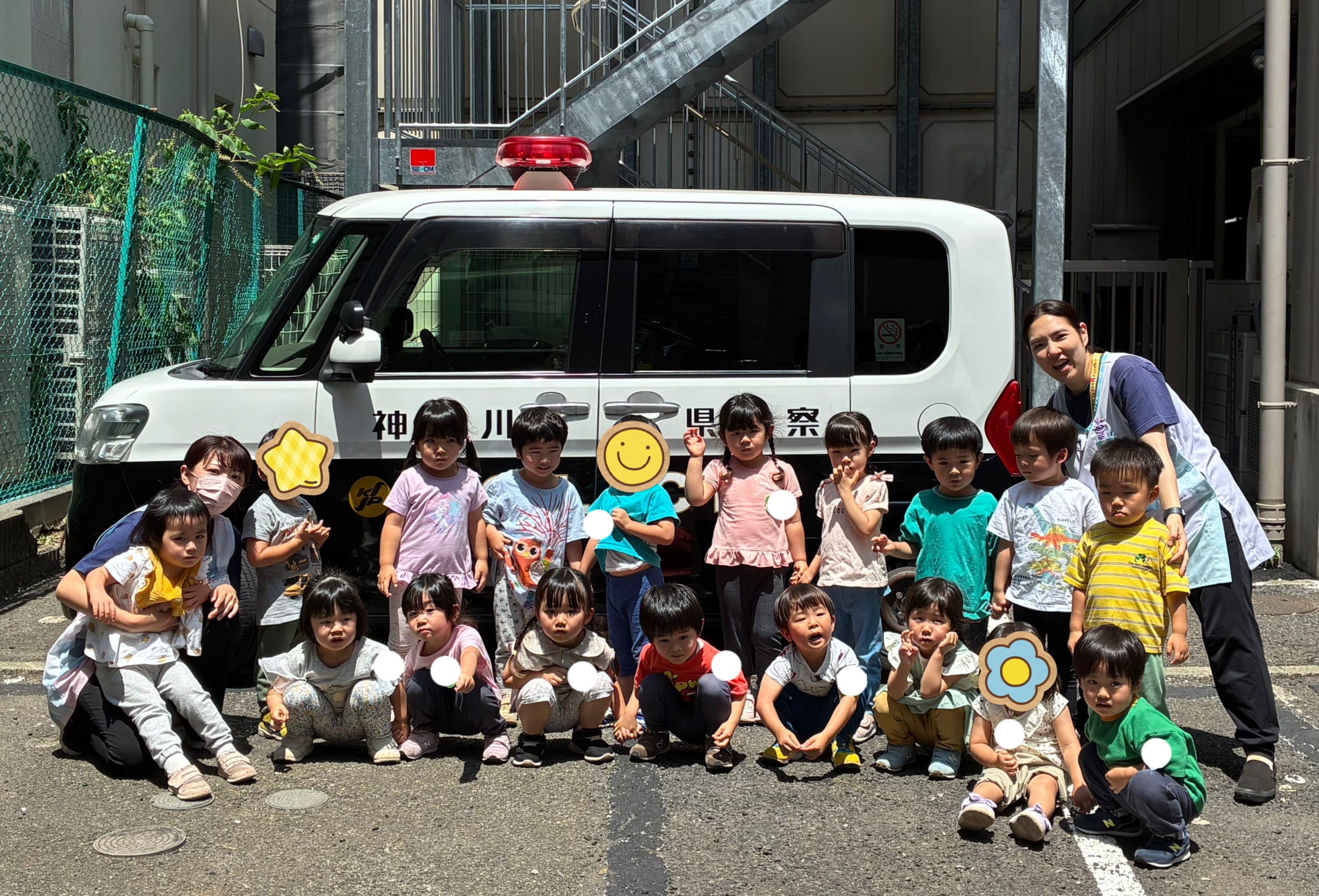 最後に、保育園に来てくれていたミニパトカーといっしょに、はい!チーズ!📸