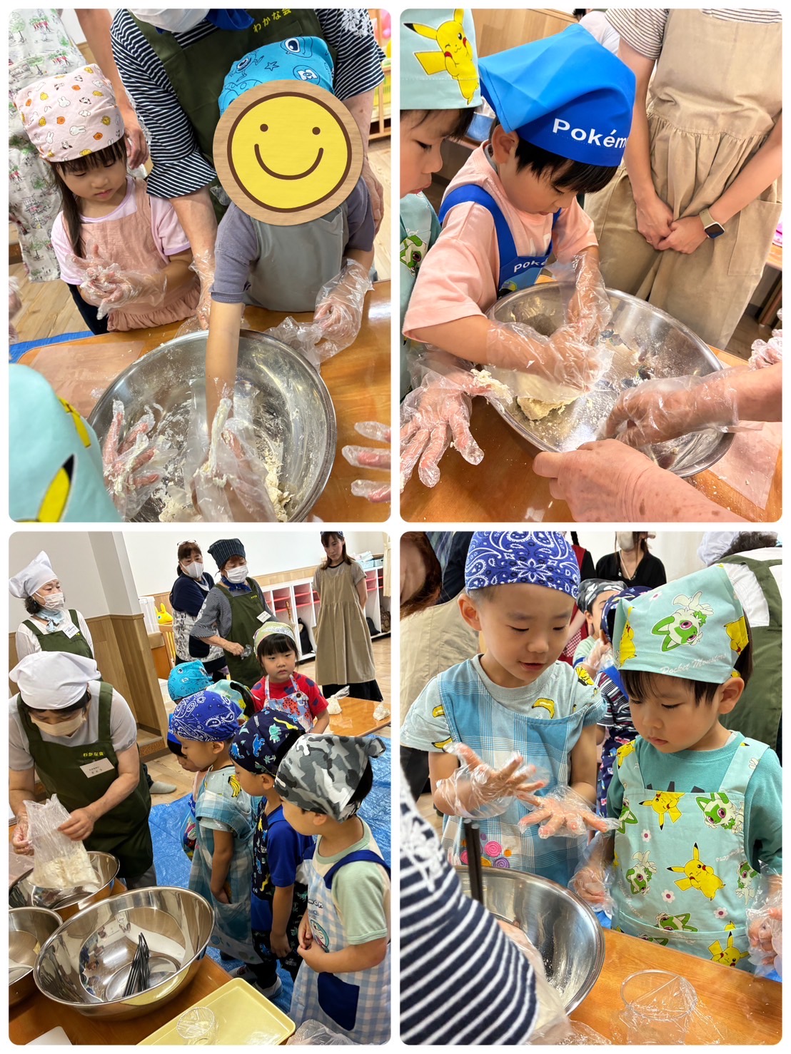 うどん作り体験を行いました✌️ 『わかな会』の皆様に作り方を教えてもらい、おうちの方とみんなで頑張りました⭐️ 粉が生地になっていく様子をじっくりと見つめたり、生地を足でたくさん踏んだりと五感で楽しみながら作ることができましたよ😄