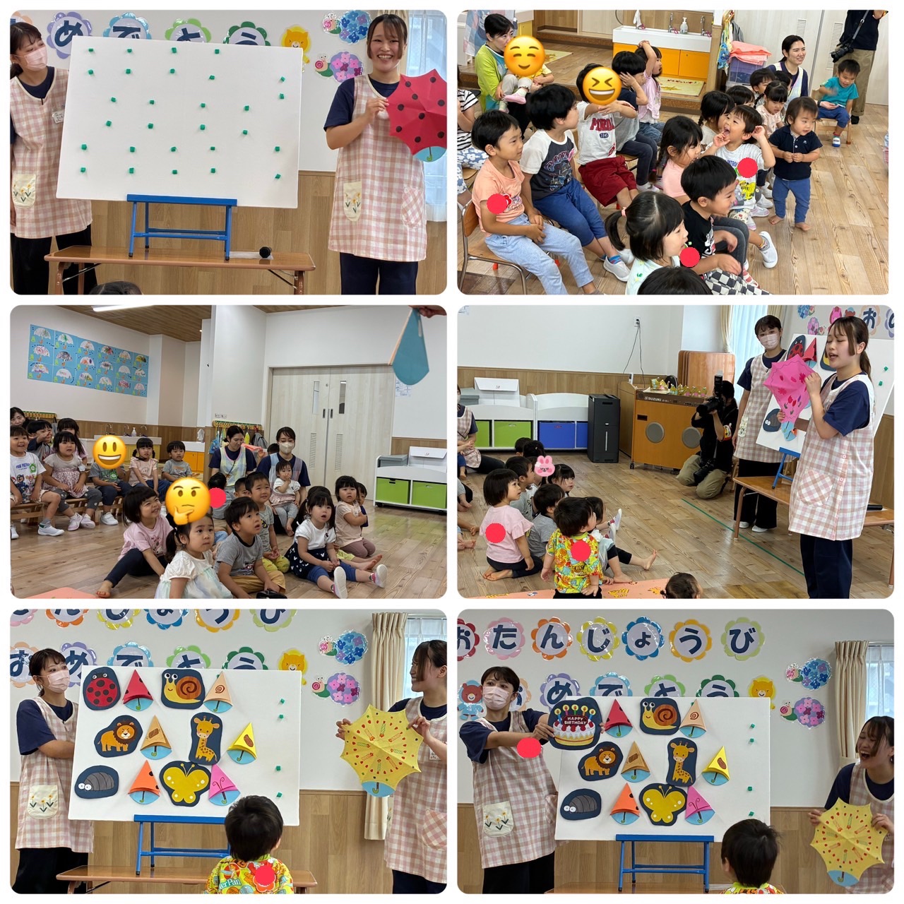 お楽しみでは 【だれのかさ?☂️】 という出し物を行い、 誰の持ち物の傘なのか🌂 🦁🐞🐌… みんなで当てて、 無事持ち主の元に届けることができました☺️