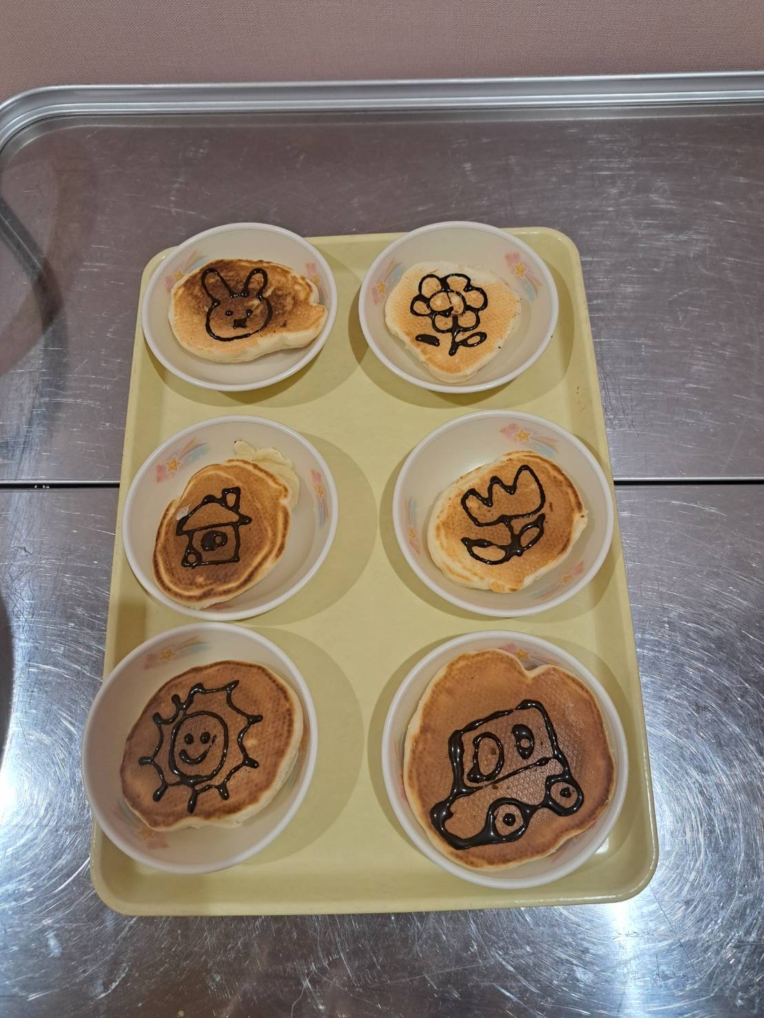 ✨リクエストメニューの紹介✨ 2026年02月18日 3月12日は、ぺえじ・ずかん組のリクエストメニューの日でした😊 「お子さまランチみたいな給食」が食べたい!ということで、はりきってオムライスを作りました♪ケチャップはクラスの先生が可愛くかけてくれて、どのクラスも楽しく食べることができました✨ おやつのホットケーキ🥞には、ココアと砂糖で作ったチョコペンでお絵描き!ぺえじ・ずかんさんは自分たちで描きました😚とっても楽しい1日になりました☘️ 【お昼】 ・オムライス ・ハンバーグ ・フライドポテト ・ブロッコリー ・コーンスープ ・みかん 【おやつ】 ・りんごジュース ・ホットケーキ