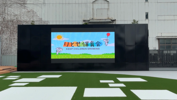 にぎわい広場で「りとせ保育会」の法人紹介動画が流れます。